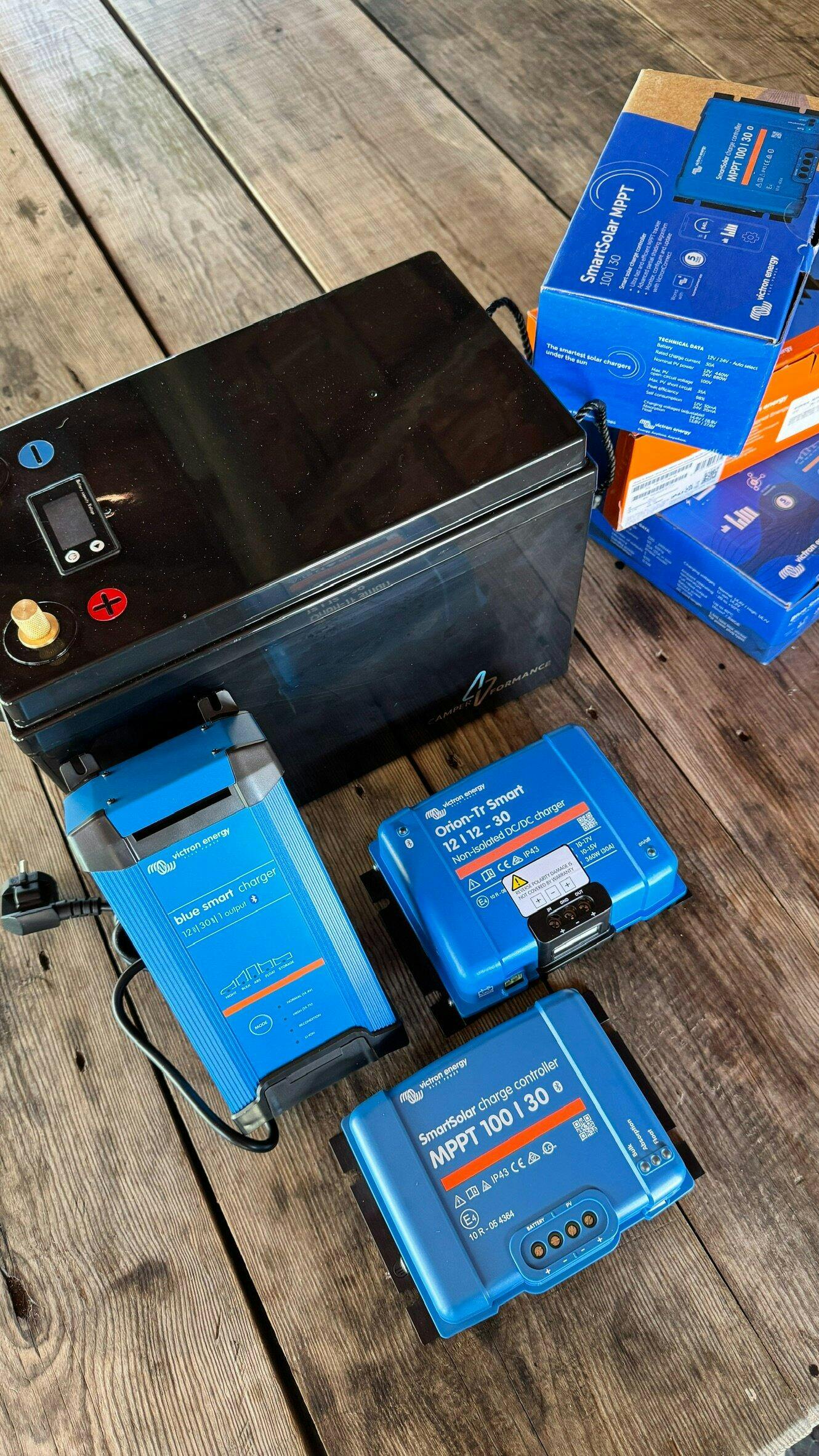 Já montámos tudo na autocaravana. Tirei uma AGM de 100Ah e fiquei mesmo impressionado com a diferença. Também comprei um carregador do alternador, meti painéis solares novos e um carregador para 220V. Foi tudo da Victron, que não há melhor. Agora, com o lítio, funciona tudo às mil maravilhas. Recomendo sem dúvida.